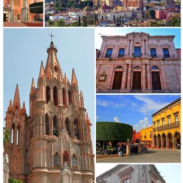 Vibrantly colored buildings line the cobblestone streets of San Miguel de Allende, a romantic city with 16th-century origins, nestled among Mexico's central highlands.